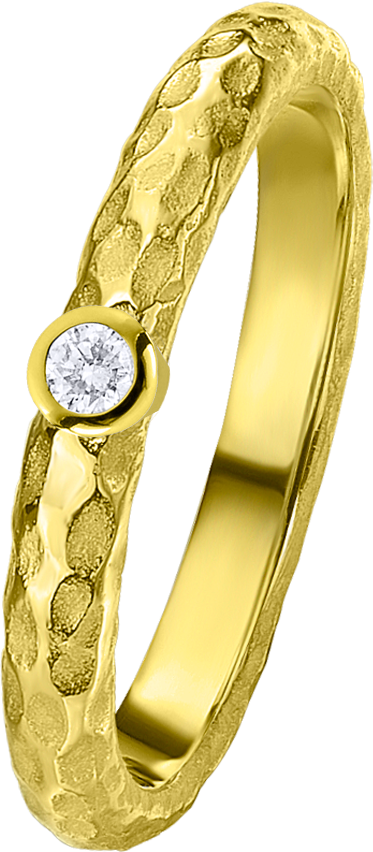 ALIANZA DE BODA EN ORO AMARILLO DE 18KT PERFIL SEMI REDONDO DE 2.8m DE ANCHO Y 1.8m DE GROSOR CON TEXTURA SEMI PULIDA Y UN DIAMANTE DE 0.03ct ENGARZADO EN CHATON INCRUSTADO EN EL ARO