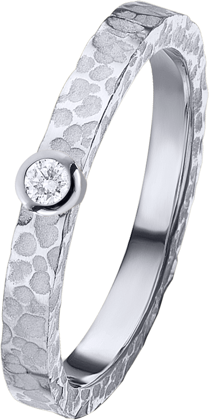 ALIANZA DE BODA EN ORO BLANCO DE 18KT PERFIL CUADRADO DE 2.5m DE ANCHO Y 2.0m DE GROSOR CON TEXTURA SEMI PULIDA Y UN DIAMANTE DE 0.03ct ENGARZADO EN CHATON INCRUSTADO EN EL ARO