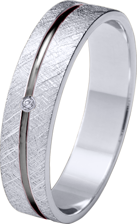 ALIANZA DE PLATA DE LEY 925m RODIADA MATIZADA PERFIL PLANO CON LINEA CRUZADA EN BAÑO DE RODIO NEGRO Y DIAMANTE 0.015ct