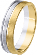 ALIANZA ORO BICOLOR MATRIMONIO MATIZADA Y PULIDA CON DOS LINEAS LATERALES PERFIL PLANO