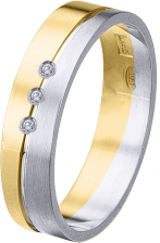 ALIANZA ORO BICOLOR MATRIMONIO MATIZADA Y PULIDA CON LINEA CRUZADA PERFIL PLANO