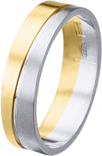 ALIANZA ORO BICOLOR MATRIMONIO MATIZADA Y PULIDA CON LINEA CRUZADA PERFIL PLANO