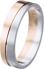 ALIANZA ORO BICOLOR MATRIMONIO MATIZADA Y PULIDA CON LINEA CRUZADA PERFIL PLANO