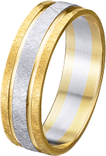 ALIANZA ORO BICOLOR MATRIMONIO MATIZADA Y PULIDA TRES PARTES IGUALES PERFIL PLANO