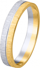 ALIANZA DE BODA DE ORO BICOLOR MATIZADA CON LINEA FINA CENTRAL PERFIL PLANO