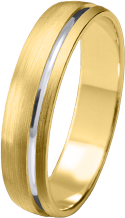 ALIANZA DE BODA DE ORO BICOLOR MATIZADA CON SURCO LATERAL PERFIL CAÑA SUAVE