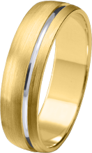 ALIANZA DE BODA DE ORO BICOLOR MATIZADA CON SURCO LATERAL PERFIL CAÑA SUAVE