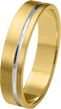 ALIANZA DE BODA DE ORO BICOLOR MATIZADA CON SURCO LATERAL PERFIL PLANO