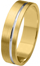 ALIANZA DE BODA DE ORO BICOLOR MATIZADA CON SURCO LATERAL PERFIL PLANO