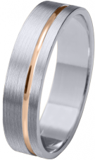 ALIANZA DE BODA DE ORO BICOLOR MATIZADA CON SURCO LATERAL PERFIL PLANO