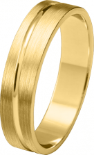 ALIANZA DE BODA DE ORO AMARILLO MATIZADA CON SURCO DIAGONAL PERFIL PLANO