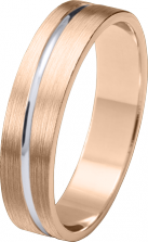 ALIANZA DE BODA DE ORO BICOLOR MATIZADA CON SURCO DIAGONAL PERFIL PLANO