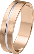 ALIANZA DE BODA DE ORO BICOLOR MATIZADA CON SURCO DIAGONAL PERFIL PLANO
