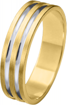 ALIANZA DE BODA DE ORO BICOLOR MATIZADA CON DOS SURCOS PERFIL PLANO